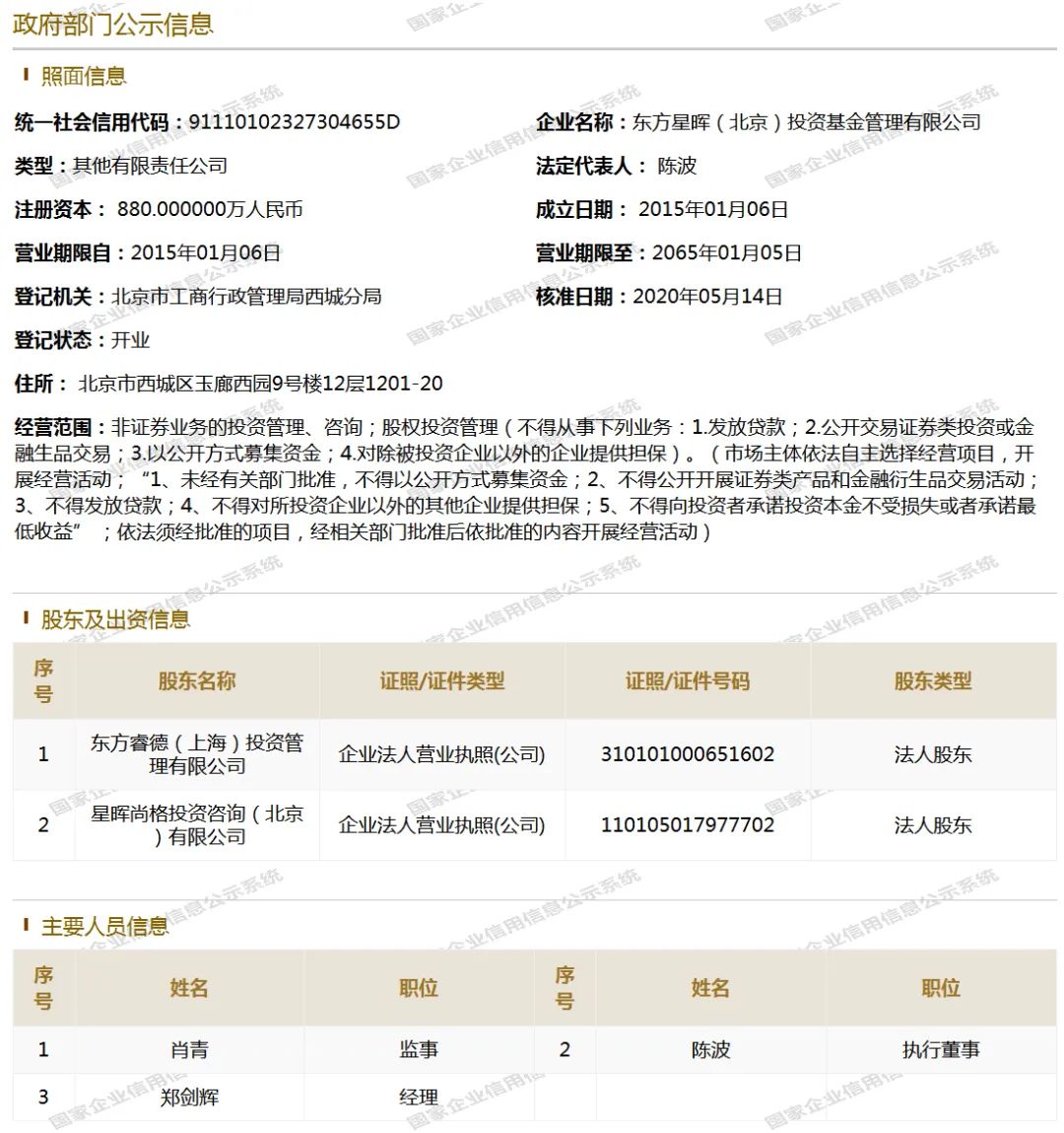 如果东方星晖总经理的郑剑辉,与之前任职东方投行的郑剑辉是同一位。行家猜测,其自东方投行离职注销后,依然受到了来自老东家的关照。