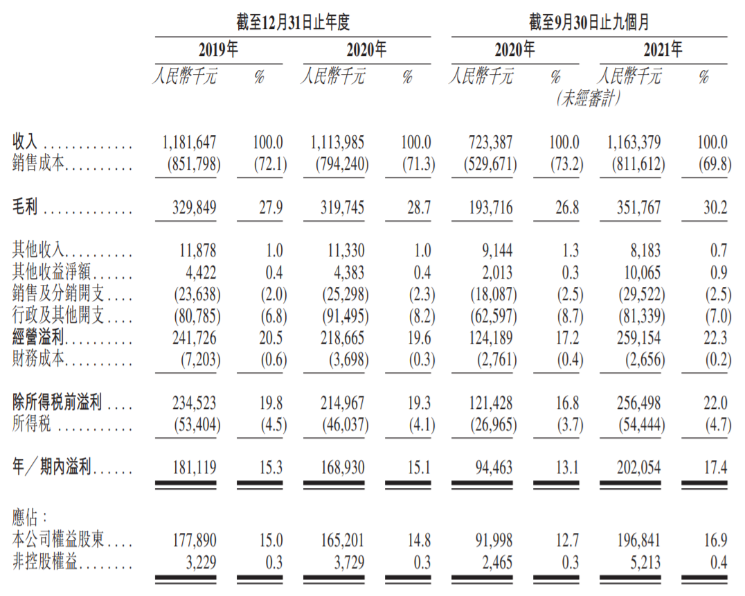 于往绩记录期内,公司于四川工厂制造所有零售产品。 杨国福在四川成都设有行业领先的自营工厂,公司的四川工厂按照欧盟BRC卫生标准、30万级GMP要求设计并制造,并于2018年9月投产。该工厂的建筑面积约为43,991平方米,主要专注于生产自产调味料及零售产品。该工厂配备有来自国际知名品牌的现代化设备,促进了智能生产管理,而公司在智能生产管理方面以高度自动化和智能方式有效融入了一大批货品的研发、试点生产和大型商用生产。 尽管自2020年初以来受到COVID-19疫情及其变种爆发的影响,但杨国福加盟餐厅业务线产生的收入于往绩记录期持续增长。有关收入由2019年的人民币(下同)10.36亿元轻微增加至2020年的10.56亿元,并由截至2020年9月30日止九个月的6.67亿元增加64.4%至2021年同期的人民币10.97亿元。
