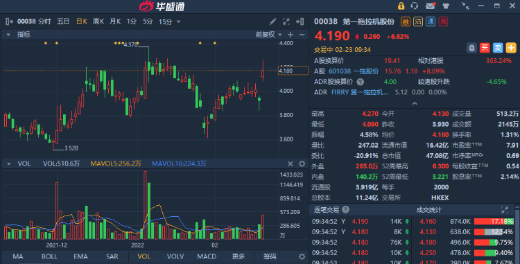 华盛资讯2月23日讯,港股农业股走强,第一拖拉机股份涨6%,万洲国际、中化化肥均涨近2%。