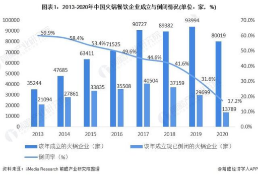覆巢之下安有完卵。火锅企业倒闭率也是居高不下。根据艾媒数据显示,我国有半数左右的火锅餐饮企业活不过5年,约3成的火锅餐饮企业在两年内倒闭。