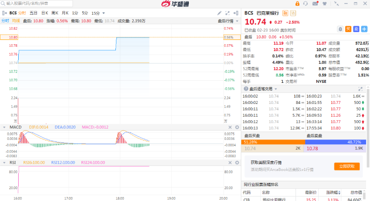 股价表现上,巴克莱隔夜收涨2.58%,报10.74美元美股,盘后涨0.56%。