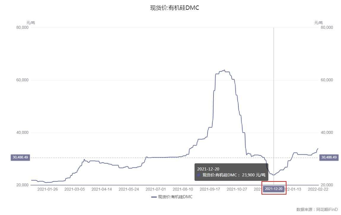 有机硅现货价格方面,根据同花顺(300033)ifind显示,自去年12月20日探秘底部以后,开始重启上行态势,整体震荡走高。