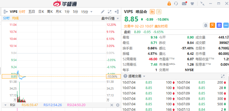 唯品会 $VIPS 大跌10.06%,Q4净利润同比下滑41.7%至14亿元,不及预期。