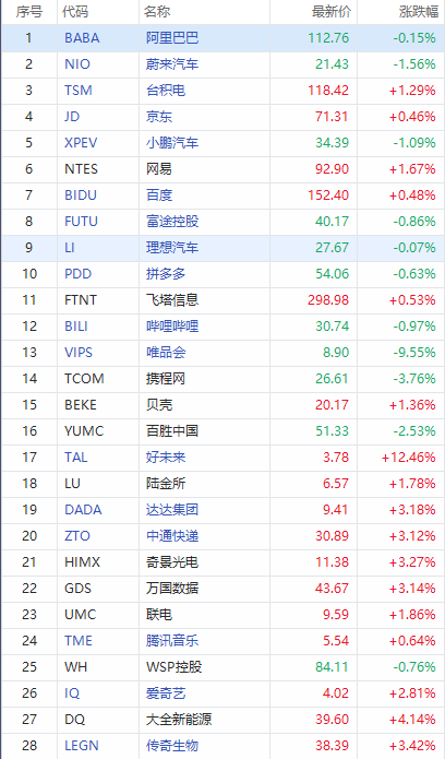 热门中概股走势分化,达达集团 $DADA 、中通 $ZTO 、传奇生物 $LEGN 涨超3%,爱奇艺 $IQ 涨超2%,网易 $NTES 、台积电 $TSM 涨超1%。汽车股相继转跌,蔚来 $NIO 、小鹏 $XPEV 跌超1%;阿里 $BABA 、拼多多 $PDD 、哔哩哔哩 $BILI 等明星科技股走弱。