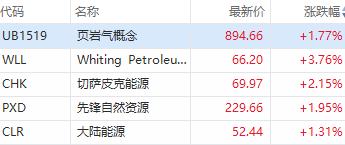 页岩气概念股,WLL,切萨皮克能源、先锋自然资源,大陆能源等皆走高。消息面上,欧洲天然气价格上涨50%。