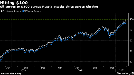 油价自2014年以来首次突破每桶105美元,俄罗斯对乌克兰多处军事设施实施打击,引发了对本已紧张的能源出口中断的担忧。