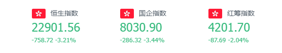 俄乌局势升级,截至周四收盘,恒指跌3.21%,失守23000点,报22901.56点。恒生科技指数重挫4.33%,哔哩哔哩跌8.6%,阿里巴巴港股跌超6.6%。