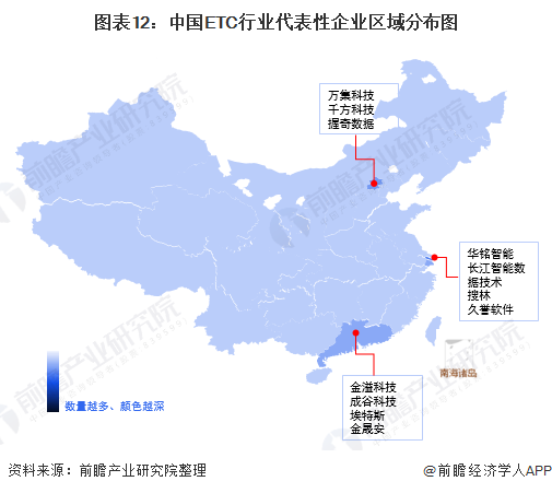 从代表性企业分布情况来看,中国ETC行业代表性企业呈现一定区域集群特征,分布于广东、北京与上海。