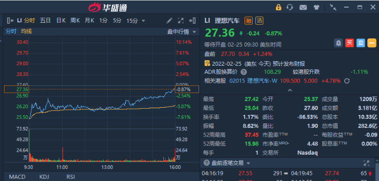 华盛资讯2月25日消息,美股股指期货全线下挫,道指期货跌近1%,纳指期货跌1.27%,标普500指数跌1.11%。美股明星科技股盘前普跌,特斯拉(TSLA)跌近2%、英伟达(NVDA)跌超2%、苹果(AAPL)跌超1%;热门中概股盘前多数下跌,阿里巴巴(BABA)跌近2%、拼多多(PDD)跌近1%,蔚来(NIO)跌超2%、理想汽车(LI)涨超1%。