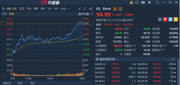 Block(SQ)盘前涨14.75%,Q4营收及non-GAAP每股盈利好于预期。
