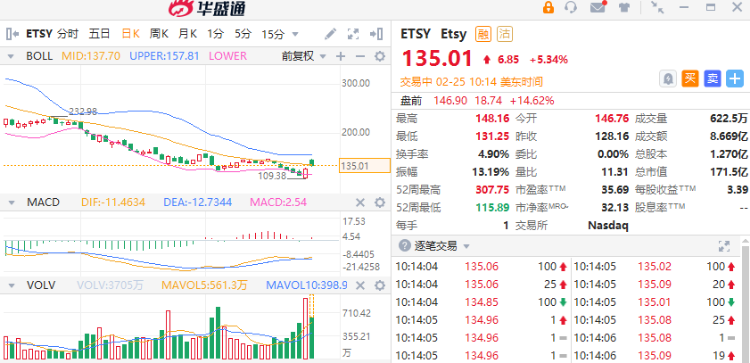 电商平台Etsy $ETSY 盘初涨超5%,Q4利润为1.616亿美元(下同):每股经调整盈利为1.11美元,优于市场预期的0.79美元;收入按年升16%至7.17亿美元,优于市场预期的6.85亿美元。