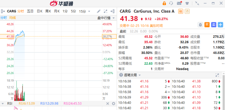 美国在线交易服务商 CarGurus $CARG 盘初大涨超28%,公司第四季度收益和收入增加。