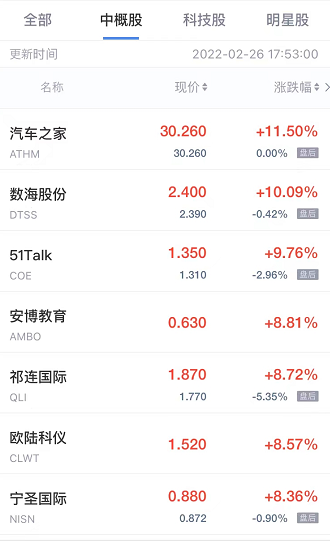 (截图来自新浪财经APP 行情-美股-中概股热门板块)下载新浪财经APP
