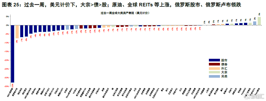 ►资产表现:大宗>债>股,俄罗斯股市大跌,成长落后