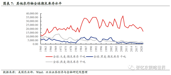 从库存水平来看,当前菜籽、葵花籽库存分别位于2007年以来的18.1%、14.2%分位数水平;大麦、黑麦、燕麦库存分别位于1960年以来的13.1%、1.6%和最低分位数水平;小麦和玉米的库存也处在近5年以来的低位水平。