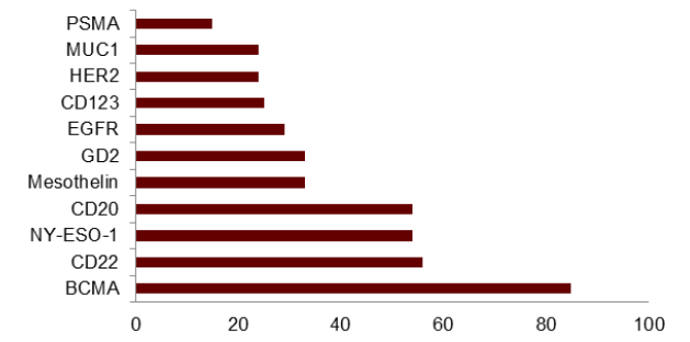 图表11:除CD19外临床试验中最常见的CAR-T肿瘤抗原
