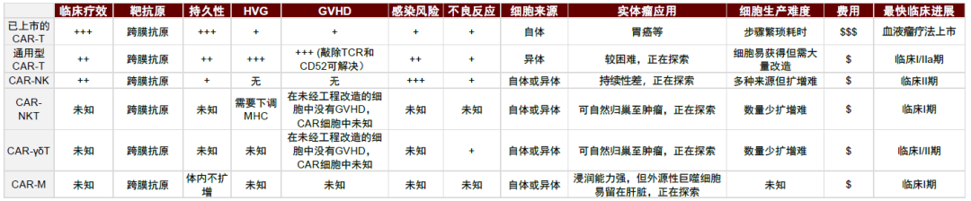 图表24:不同细胞免疫疗法比较