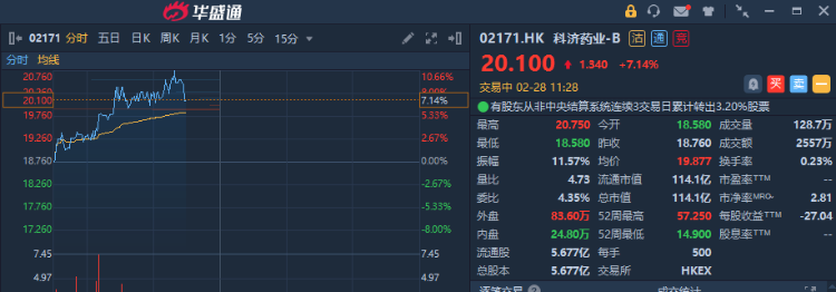 科济药业-B(02171)一度升超10%。公司最新预亏数据显示,2021年,经调整净亏损约为5.35-5.65亿元,同比增加60%-69%。相关数据或好于市场预期。