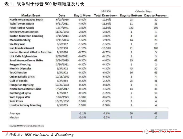 战争对资本市场有短期负面冲击,但中长期影响不大;