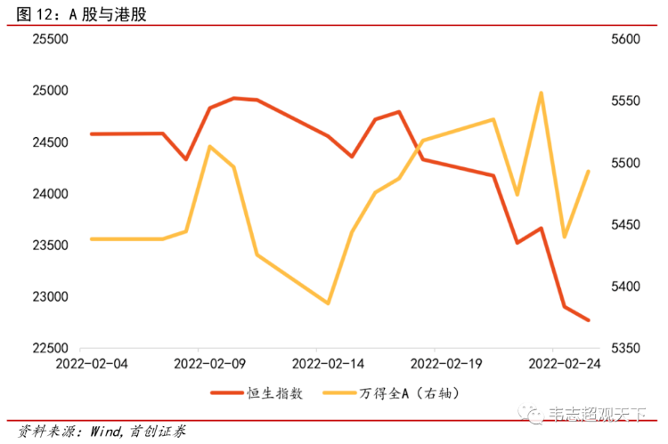 3)我们之前测算,在中性假设下,标普500年内可能跌到4000点左右,本轮俄乌战争催化已经把标普砸到4144的点位,港股经过了压力测试。