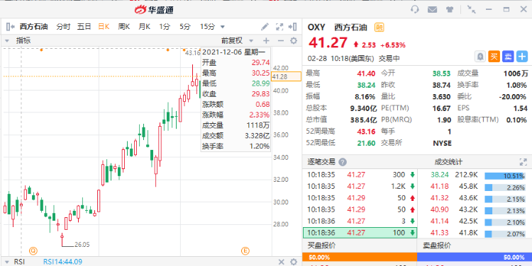华盛资讯2月28日消息,美股盘中,油气板块股票普遍走高,西方石油涨超6%,戴文能源涨超近4%,墨菲石油涨近4%、EOG能源涨超3%。WTI原油短线拉升0.8美元,报95.50美元/桶。