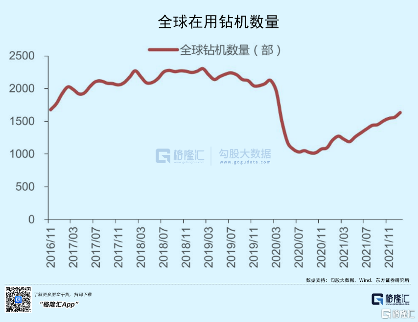 尤其是中东地区的钻机数量,在2020年出现断崖式下跌,到现在也没有得到显著恢复。