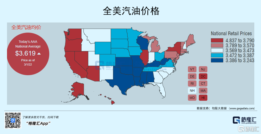尤其在美国,超过70%的零售商品通过卡车运输。而目前美国的汽油平均价格为3.53美元/加仑,是2014年来的最高水平,可能很快就会超过2008年夏天4.11美元的纪录。
