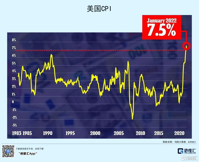 今年1月,美国的通胀率已经达到40年新高7.5%,如果继续拉高,局面只会越发难以控制。