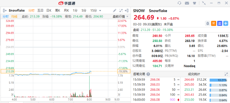 财报显示,Snowflake的2022财年第四季度总营收为3.838亿美元,与去年同期的1.905亿美元相比增长101%,Q4营收增长为2019年以来最低水平;净亏损为1.322亿美元,与去年同期的净亏损1.989亿美元相比有所收窄;归属于普通股股东的每股基本亏损和每股摊薄亏损均为0.43美元,相比之下去年同期归属于普通股股东的每股基本亏损和每股摊薄亏损均为0.70美元。 截至周四21:07,该股跌超19%。