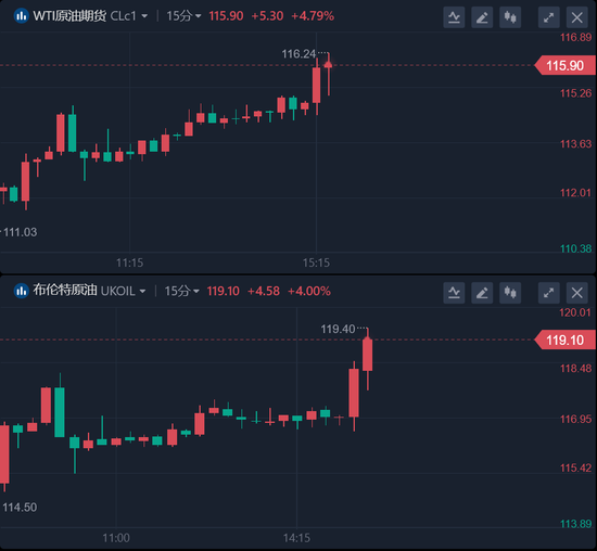 WTI原油期货自2008年以来首次触及116美元/桶。