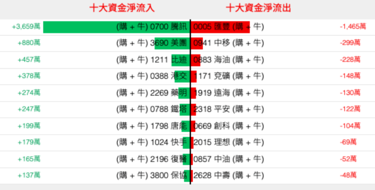 好仓(认购证及牛证)方面,周四腾讯、美团相关好仓单日分别录得约3659万、880万港元资金净流入;相反,汇丰、中移相关好仓单日分别录得1465万、299万港元资金净流出。