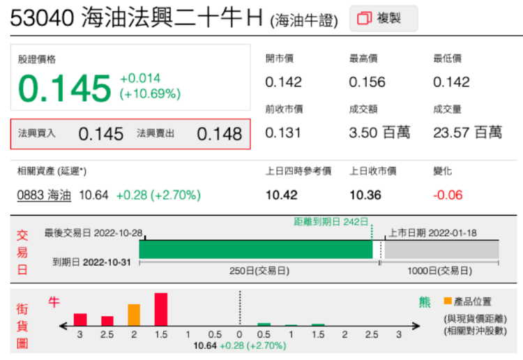1、强势轮证:海油法兴二十牛H(53040.HK),周四上涨10.69%;