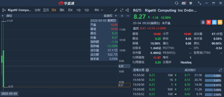 量子计算公司Rigetti登陆纳斯达克,昨日跌超12%
