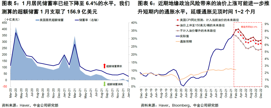 对于货币政策的启示是,“近端”操作上依然会按部就班加息(就业好、通胀依然高;市场预期3月加息25bp确定性较高),但“远端”加息路径有变数。如果俄乌局势能很快缓解使得价格影响较为“瞬时”,那么通胀压力改善的大方向仍可期待;而如果这一冲击进一步固化的话,“远端”加息预期的抬升和对利率与市场估值的冲击也需要再度上修。我们测算按当前油价通胀拐点将延后1个月出现;如若油价在未来3个月攀升至150美元/桶,拐点延后2个月,长端国债或摸高2.3~2.4%。