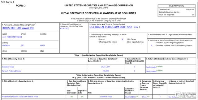 根据巴菲特旗下的伯克希尔哈撒韦于当地时间3月4日向美国证交会提交的13G文件显示,伯克希尔哈撒韦增加了对能源巨头——西方石油公司的投资。文件显示,伯克希尔在西方石油公司的总持股量达到1.137亿股(其中大部分通过权证的方式持有)。目前该公司持有占比约11.2%西方石油普通股,投资价值约为64亿美元。