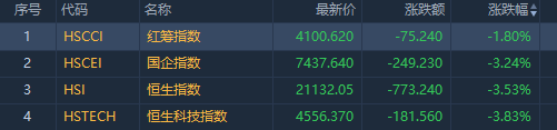 最惨烈的还数港股市场,港股恒指跌超3%,恒生科技指数一度跌超4%,科网股重挫,商业银行板块走低。