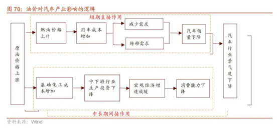 从汽车产业来看:油价的高企会从整体上抑制汽车的需求。三次石油危机期间,全球汽车销量均有较大幅度下滑。从趋势上来看,高油价为新能源车的发展创造了契机,日本、美国、欧洲、中国等相继开始在新能源车领域积极布局。
