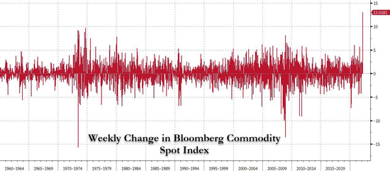 这也进一步造成了当前大规模的现金回流。彭博大宗商品现货指数的反弹,市场大宗商品价格创纪录的最大单周涨幅也体现了这一点。