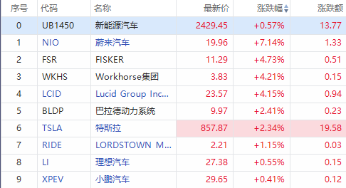 华盛资讯3月7日消息,美股部分新能源车股盘初走高,蔚来(NIO)涨超7%,Lucid Group(LCID)、Fisker(FSR)涨超4%,特斯拉(TSLA)涨超2%。