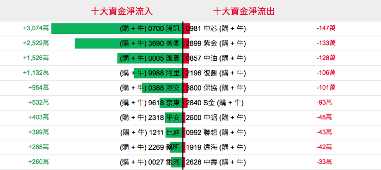 周一北水南下资金继续录得净买入,为约54.49亿港元。个股方面,腾讯单日录得约20.1亿港元北水资金净买入,继续居于榜首,美团单日亦继续录得超10亿港元北水资金净流入;相反,中国海洋石油、药明生物单日分别录得约2.64亿、2.60港元北水资金净卖出,中国神华单日亦录得约8,078万港元北水资金净流出。