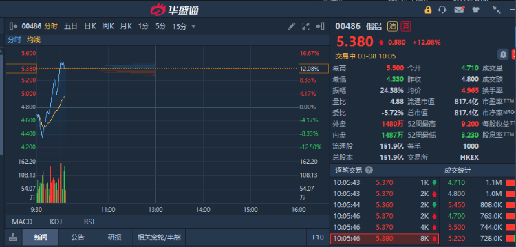 华盛资讯3月8日讯,俄铝拉升涨超12%,为连续第二日大幅反弹,早盘一度跌近10%。该股此前一度因俄乌战事从2月17日的9.2港元跌至3月2日的3.23港元,期间最大跌幅达64.8%。消息面上,俄铝今日公告称,公司控股股东EN+目前正在评审其对公司的战略。根据En+的声明,正在考虑的选项包括开拓公司国际业务的可能性。