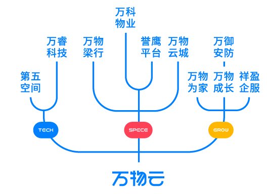 万物云旗下包含“空间(Space)”、“科技(Tech)”、“成长(Grow)”三大业务模块,致力于以科技推动空间服务业的数字化升级,携手行业伙伴共走高品质服务之路,让空间科技服务历久弥新。