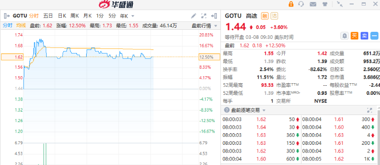 高途 $GOTU 盘前一度涨超18%,第四季度同比扭亏为盈