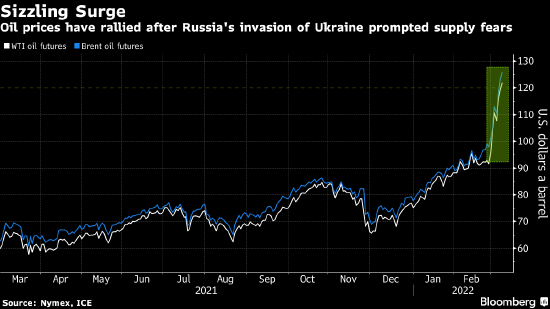 受此消息提振,纽约时间8:19,原油期货上涨4%报124.21美元。