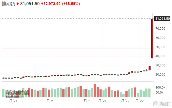 虽然自从俄乌冲突爆发后,市场出于对俄罗斯镍矿供应状况的担忧,镍的价格就不断抬升,但两日内如此暴涨,实在反常。