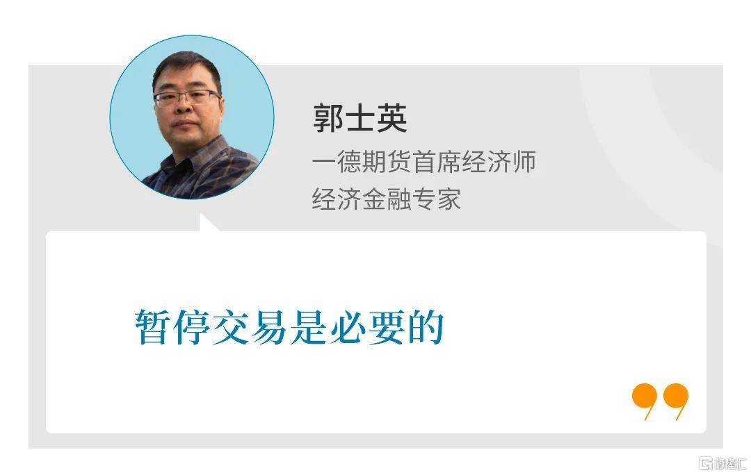 我们认为,暂停交易是必要的。对单日涨跌过大的行情,期货交易所本来就应该设置一些保护措施,比如涨跌停板和熔断机制,以避免短期风险过快积聚而影响履约风险的发生,这对投资者以及交易所都是一种很好的保护,也有利于紧张情绪的缓解和后期的风险处置工作。