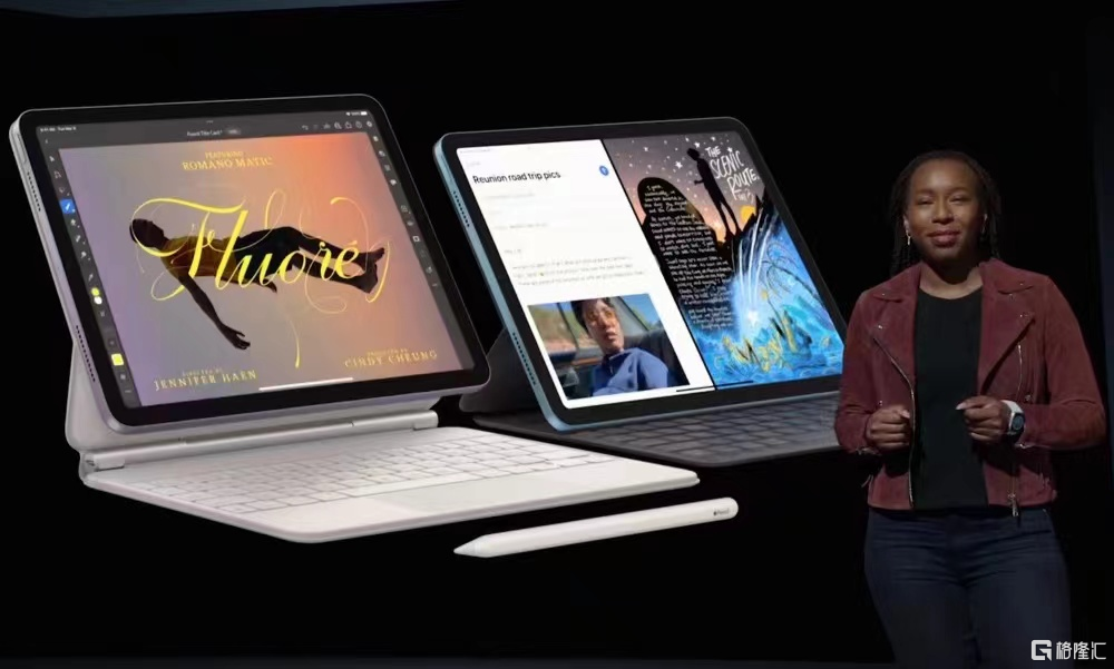 据iPad工程项目主管Angellina Kyazike介绍,新iPad Air搭载M1芯片,8核芯片可带来 60%的性能提升,图形性能是上一代A14芯片组的两倍。