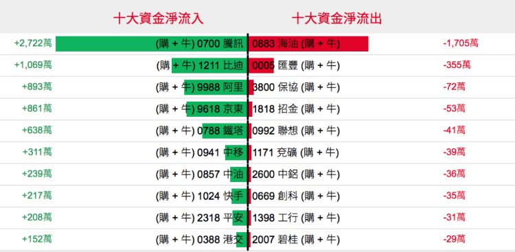 好仓(认购证及牛证)方面,周二腾讯相关好仓单日录得约2,722万港元资金净流入,比迪、阿里等相关好仓单日分别录得约1,069万、893万港元资金净流入;相反,海油相关好仓单日录得约1,705万港元资金净流出,汇丰、保协等相关好仓单日分别录得约355万、72万港元资金净流出。