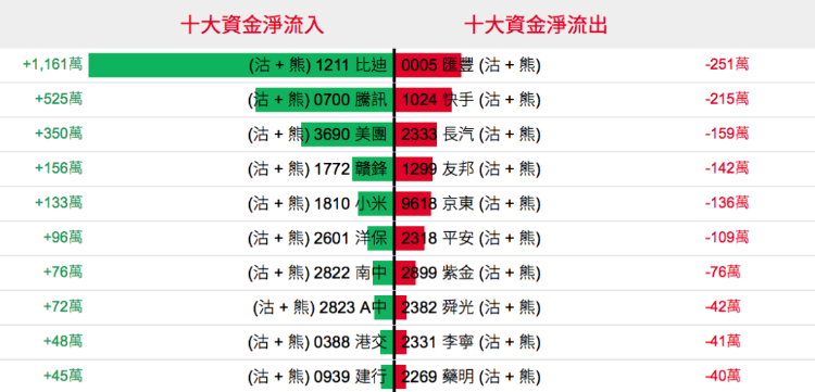 淡仓(认沽证及熊证)方面,周二比迪相关淡仓单日录得约1,161万港元资金净流入,腾讯、美团等相关淡仓单日分别录得约525万、350万港元资金净流入;相反,汇丰、快手等相关淡仓单日分别录得约251万、215万港元资金净流出。