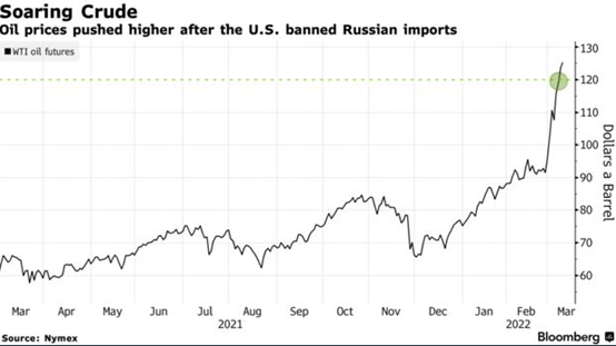 随着俄乌冲突爆发以及西方开始将制裁目标瞄准俄罗斯的能源出口,油价一路飙升至每桶125美元附近。油价的高企会从整体上抑制燃油车的需求,为新能源车的发展创造了契机。